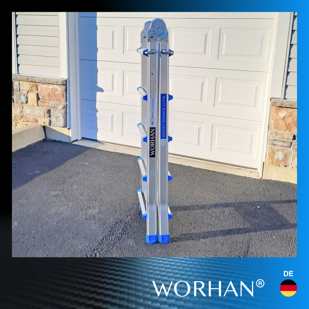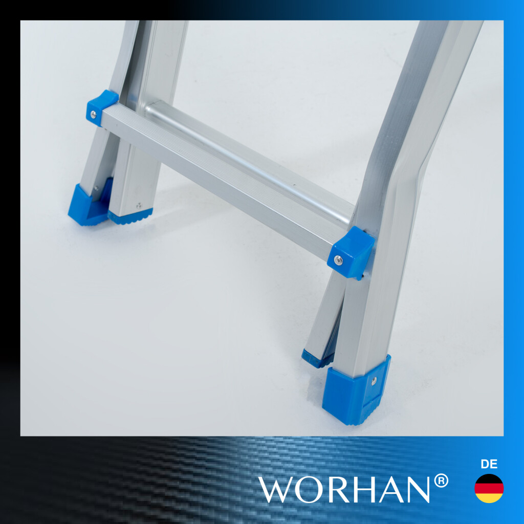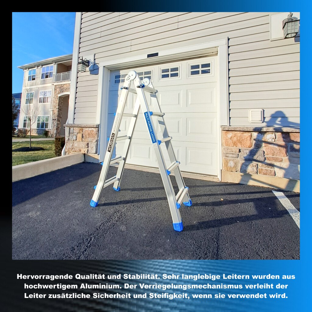Höhe (voll ausgestreckt): 530cm., Höhe wie Trittleiter: 254cm (an der Apex)., Abstand zwischen den Sprossen: 28 cm., Sprossen 2x8., Gefaltete Größe: 156cm x 48cm x 21cm., Gewicht: 13.2kg. Deutsche Marke., Außergewöhnliche Kundenbetreuung. Schnelle Lieferung. Hochwertigem Alu., Stabilisator gewährt zusätzliche Sicherheit und Stabilität., Sichere Arbeitsbelastung beträgt 150 kg., Sie erfüllen den europäischen Sicherheitsstandard EN131., Sicherer, einfacher und bequemer Verriegelungsmechanismus gewährleistet eine einfache Einstellung der Arbeitshöhe. Hervorragende Qualität und Stabilität., Sehr langlebige Leitern wurden aus hochwertigem Aluminium., Der Verriegelungsmechanismus verleiht der Leiter zusätzliche Sicherheit und Steifigkeit, wenn sie verwendet wird. Warum lohnt es sich, die von uns hergestellten Waren zu kaufen: Bei der Herstellung verwenden wir Materialien mit größerer Dicke, um die Festigkeit zu erhöhen und die Stabilität zu erhöhen., Wir haben uns spezialisiert und verfügen über langjährige Erfahrung in der Herstellung von Leitern und Rampen., Als deutscher Markenhersteller stehen wir im langfristigen Kontext hinter unseren Produkten. Aluminium von höchster Qualität gewährleistet die Robustheit und Langlebigkeit unserer Produkte.