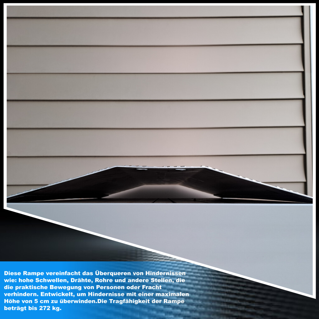 Diese Rampe vereinfacht das Überqueren von Hindernissen wie: hohe Schwellen, Drähte, Rohre und andere Stellen, die die praktische Bewegung von Personen oder Fracht verhindern. Hergestellt nach EN-131 und CE-Normen Technische Daten: Größe: 70 cm x 55 cm, Gewicht 3,7 kg, maximale Tragfähigkeit: 272 kg, entworfen, um Hindernisse mit einer Höhe von 5 cm zu überwinden. DEUTSCHE MARKE AUSSERGEWÖHNLICHER KUNDENSERVICE. Die Rampenstützpunkte an jedem Ende sind mit einem Schutz ausgestattet, um Kratzer auf dem Boden zu vermeiden. Es ist keine Montage erforderlich. Ideal, um sich bequem in Rollstühlen, Rollern, Schubkarren usw. fortzubewegen. Eine einfache und langlebige Konstruktion aus eloxiertem Aluminium, die nicht rostet. Bei Bedarf einfach zu entfernen. Die rutschfeste Oberfläche der Rampe sorgt für Sicherheit für die Benutzer. Warum Sie unsere Produkte kaufen sollten: Bei der Herstellung verwenden wir dickere Materialien für mehr Festigkeit und erhöhte Stabilität. Wir sind spezialisiert auf und verfügen über langjährige Erfahrung in der Herstellung von Leitern und Rampen. Als deutsches Markenunternehmen stehen wir dahinter unsere Produkte langfristig Das hochwertigste Aluminium garantiert die Robustheit und Langlebigkeit unserer Produkte.