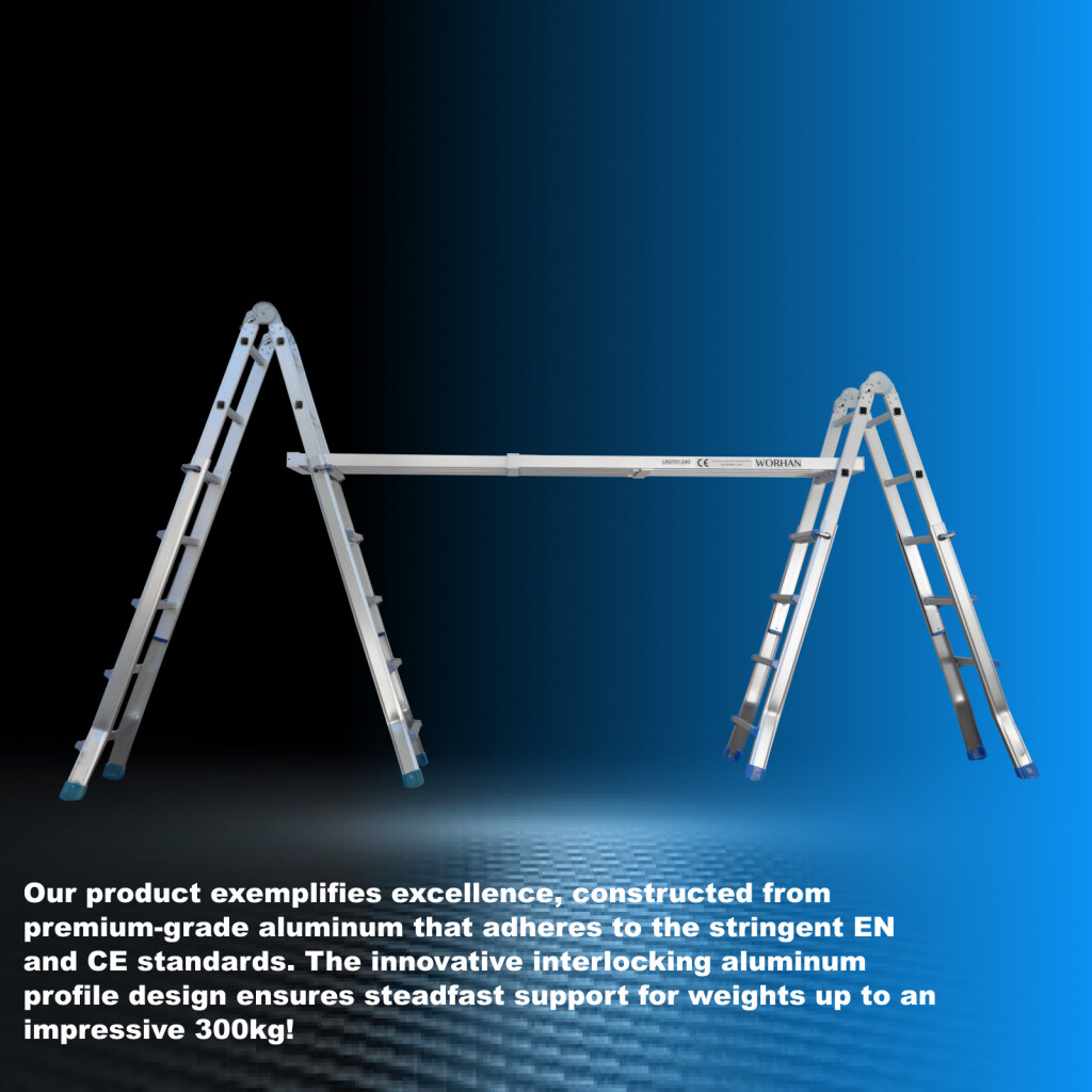 Our product exemplifies excellence, constructed from premium-grade aluminum that adheres to the stringent EN and CE standards. The innovative interlocking aluminum profile design ensures steadfast support for weights up to an impressive 300kg! Featuring 3 heavy-duty handles and an engraved, non-slip surface for enhanced grip. Weight - 11.6kg., Min Length (folded) - 195cm., Max Length (extended) - 300cm., Min Width - 28.6cm., Max Width - 31.8cm., Min Thickness - 5cm., Max Thickness - 6cm., Overlap distance when fully extended - 71cm. (according to the attached image with dimensions) GERMAN BRAND. EXCEPTIONAL CUSTOMER SERVICE. Installation is a breeze, thanks to the user-friendly design that allows for super-fast deployment. Our ramp is ingeniously engineered to be used at any length between the minimum and maximum values. Equipped with Integrated aluminum maximum length stoppers. Choosing our products signifies a commitment to superior quality. Our manufacturing process utilizes thicker gauge materials, enhancing strength and stability. With years of specialized experience in ladder and ramp production, we, as a German brand, offer steadfast support and stand by our products in the long term. The use of the highest quality aluminum guarantees the robustness and longevity of our exceptional products.
