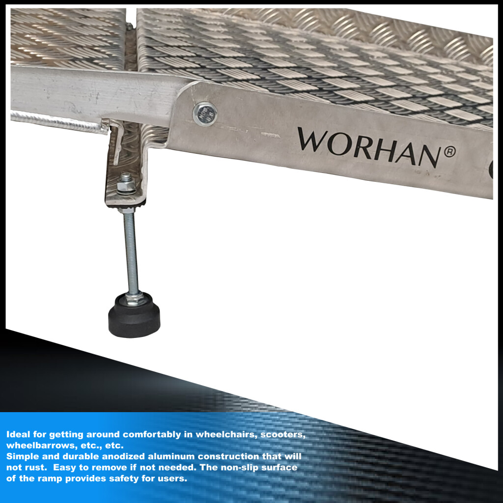 This ramp makes it easy to cross obstacles such as: high thresholds, wires, pipes and other places that prevent the practical movement of people or cargo., The variable height function (from 5cm to 15cm) makes every task easier., 2 sets of extensions are included., For a minimum height, the platform should be used without extensions., Manufactured to EN-131 and CE standards Specifications: 75cm (width) x 127cm (length)., Weight 12.6kg., Maximum load capacity: 300kg., Designed to overcome height obstacles (from 5cm to 15cm)., Variable height function., Height is in increments of 1mm adjustable No assembly is required. Ideal for getting around comfortably in wheelchairs, scooters, wheelbarrows, etc. Simple and durable anodized aluminum construction that won't rust. Easy to remove if necessary. The ramp's non-slip surface provides safety for users.