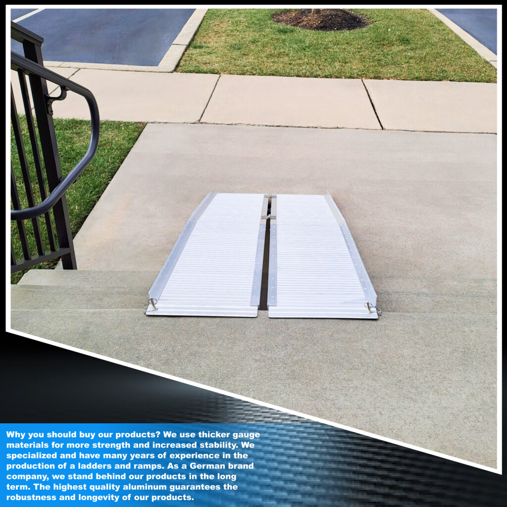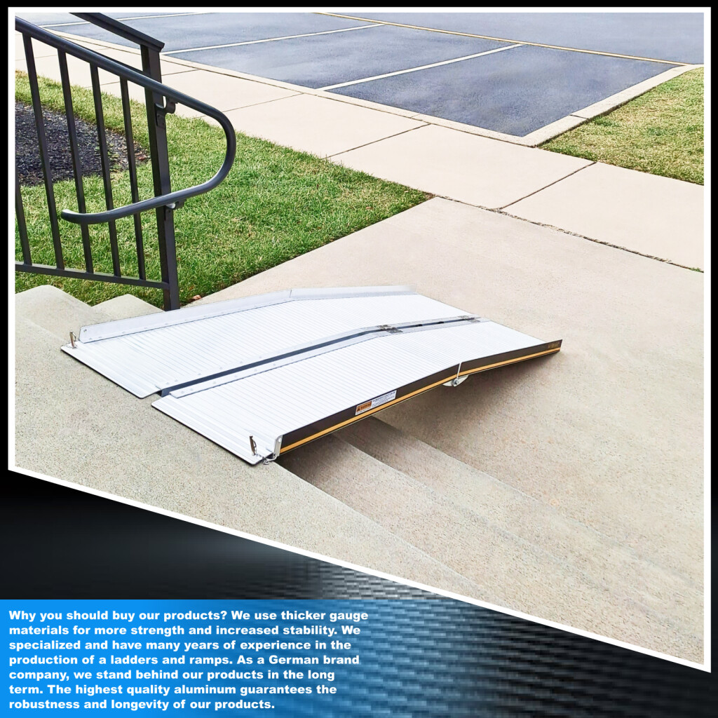 Why you should buy our products? We use thicker gauge materials for more strength and increased stability., We specialized and have many years of experience in the production of a ladders and ramps., As a German brand company, we stand behind our products in the long term., The highest quality aluminum guarantees the robustness and longevity of our products.