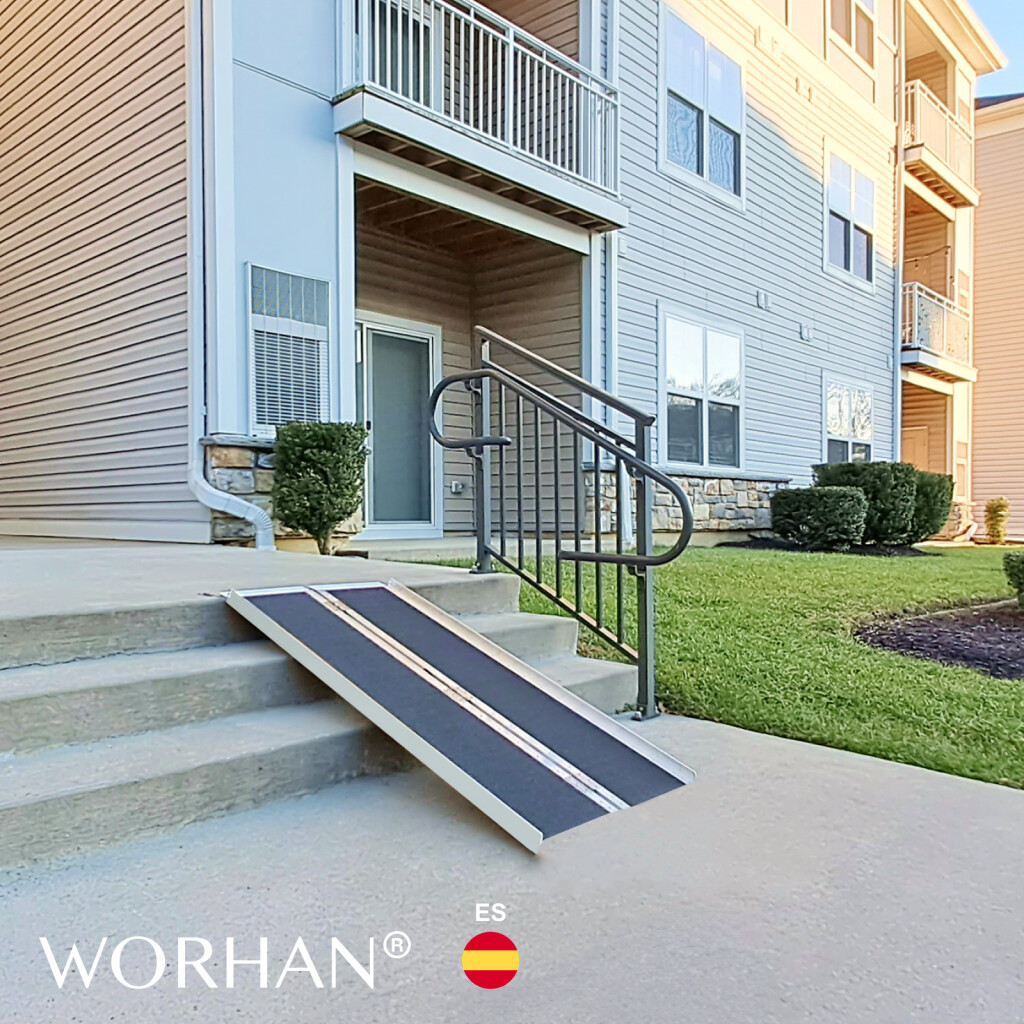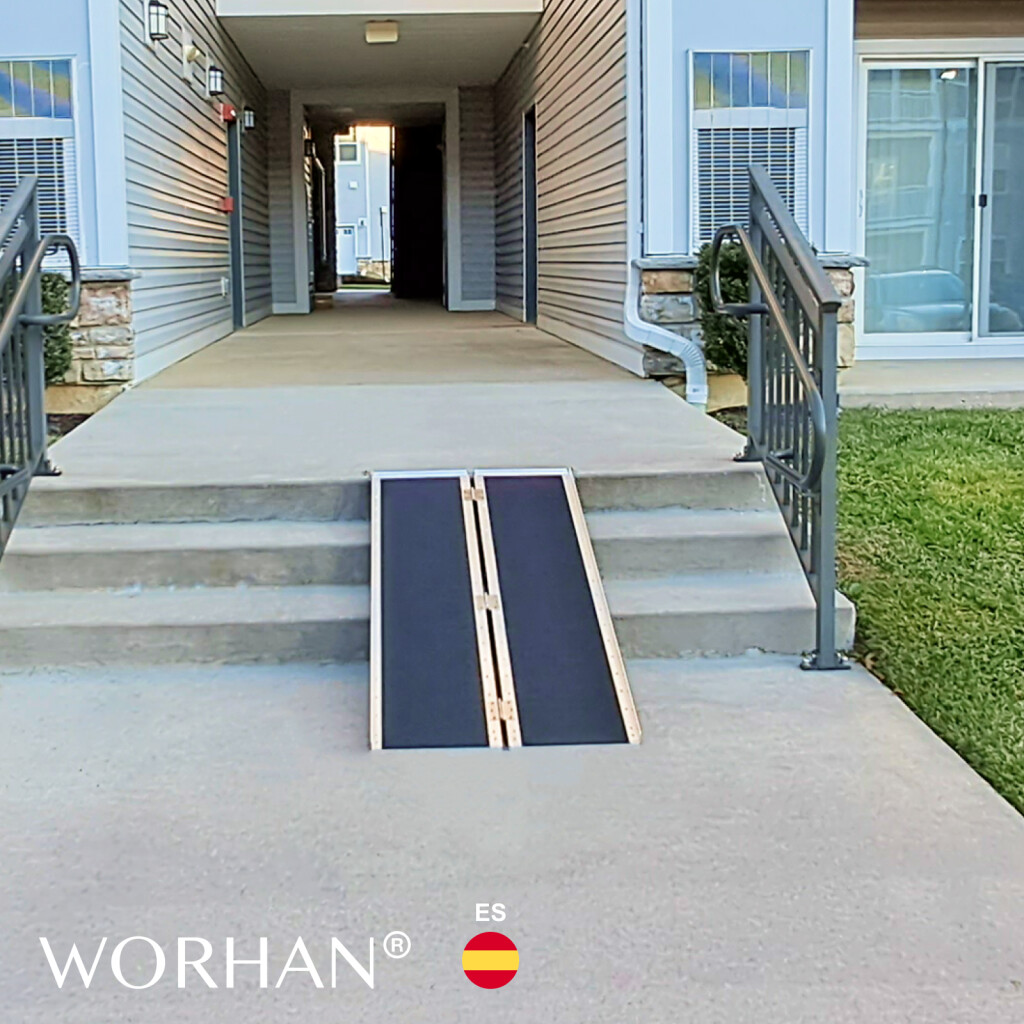 Función antideslizante aumentada., Esta rampa se pliega muy fácilmente., Superficie resistente y EXTRA antideslizante incluso con tiempo húmedo o lluvioso., Producto duradero en el tiempo., Material: aluminio anodizado de alta calidad., Diseño optimizado, sólido y único., Muy práctico para manipulación o transporte y almacenamiento.