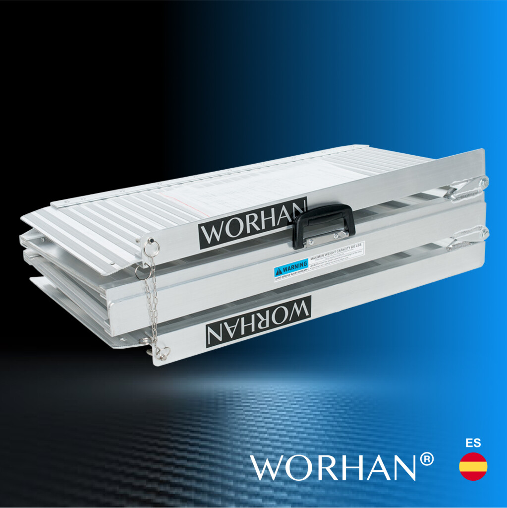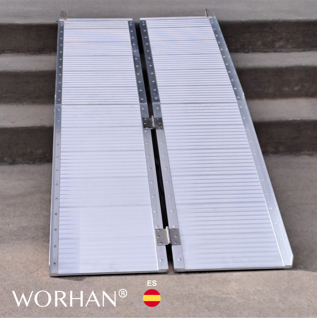 Esta rampa se pliega muy fácilmente (dos veces: en largo y ancho)., Superficie resistente y antideslizante incluso con tiempo húmedo o lluvioso., Producto duradero en el tiempo., Material: aluminio anodizado de alta calidad., Diseño optimizado, sólido y único., Muy práctico para manipulación o transporte y almacenamiento.