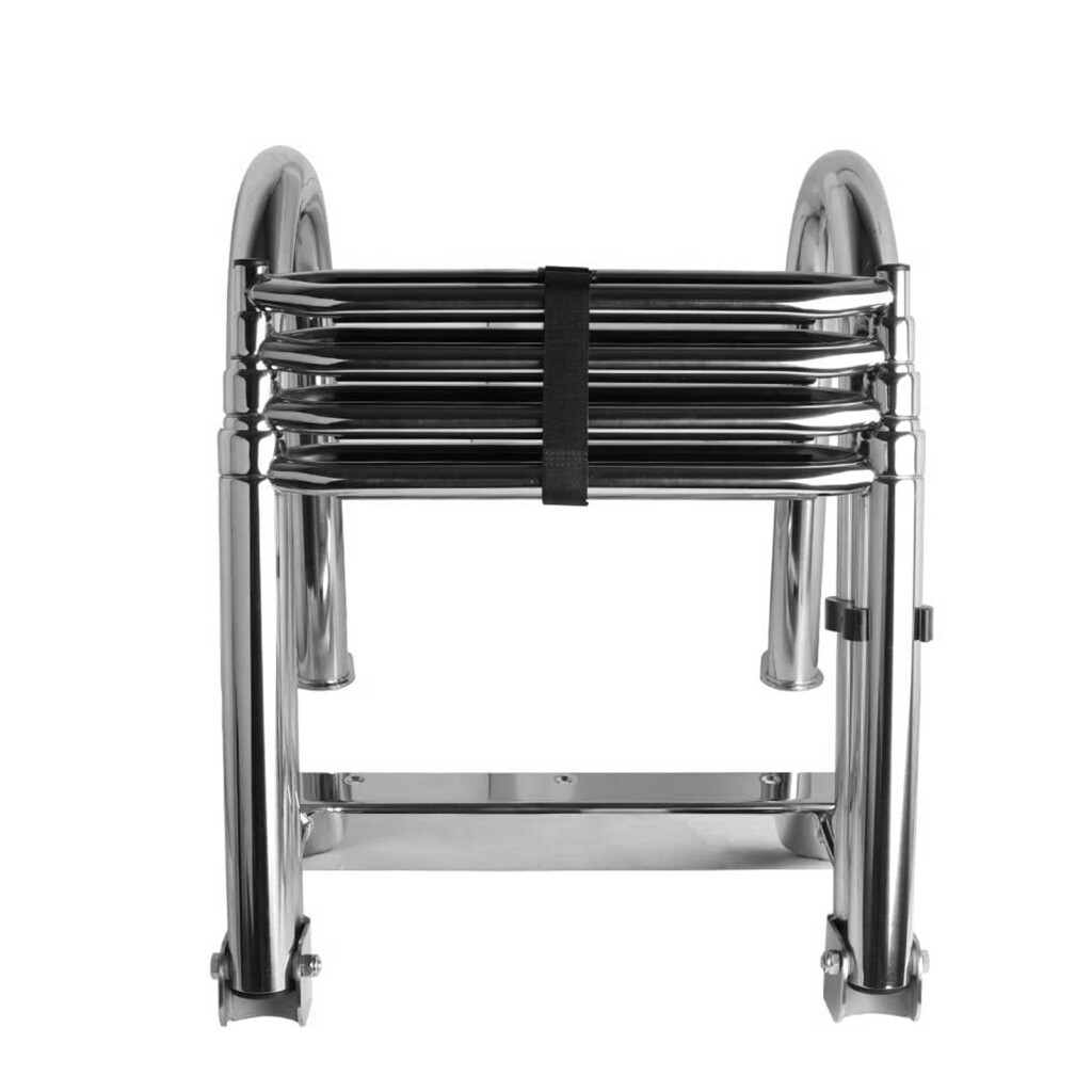 Mains courantes ergonomiques pour un accès facile. Marches télescopiques extra larges. La surface des marches est en caoutchouc antidérapant pour une sécurité et un confort maximum.