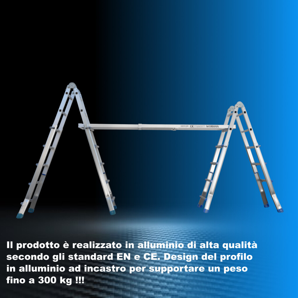 Scala 4.14 m telescopica multifunzione. Forte e stabile scaletta L4
