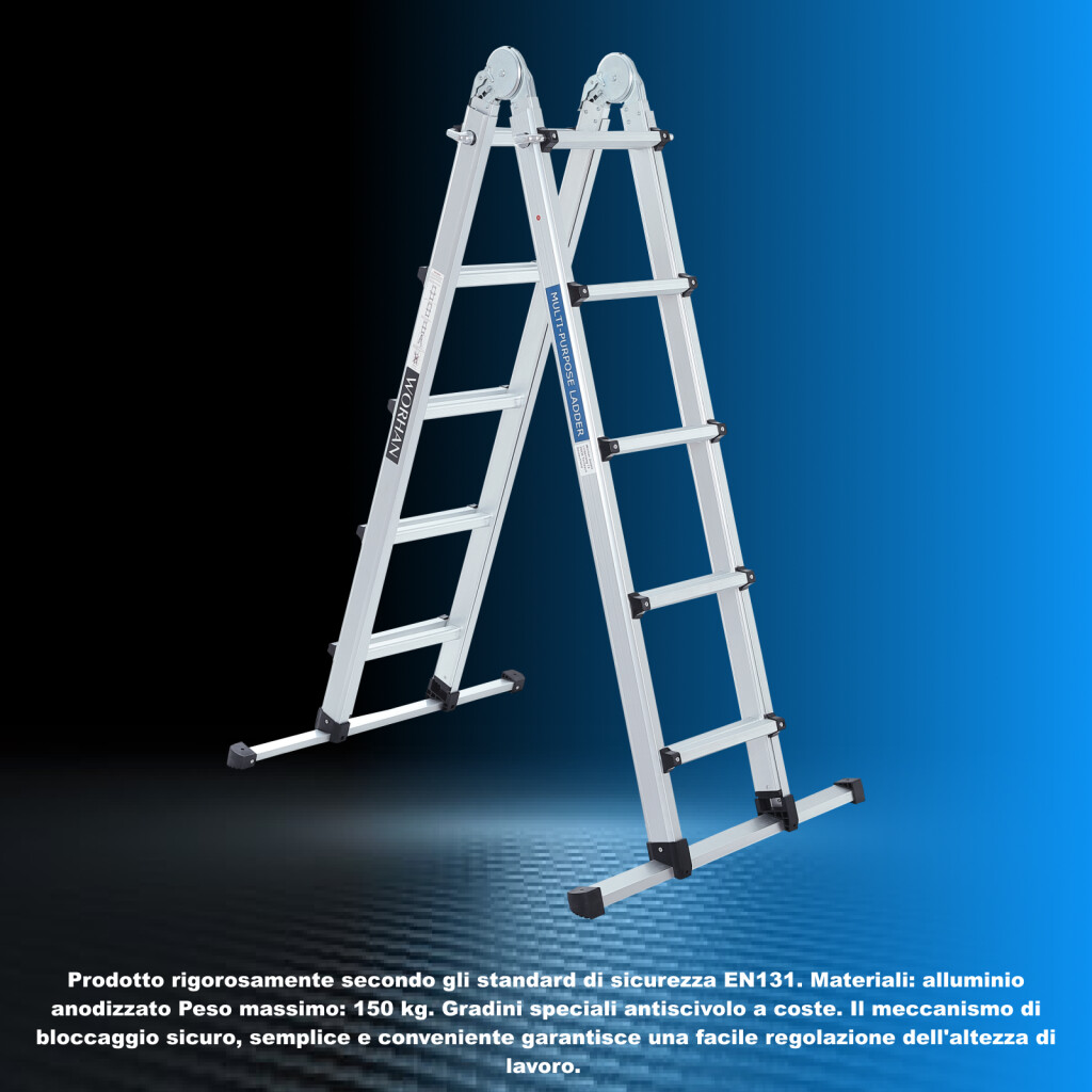 Scala 4.14 m telescopica multifunzione. Forte e stabile scaletta L4