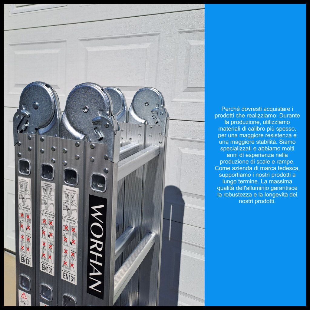 Perché dovresti acquistare i prodotti che realizziamo: Durante la produzione, utilizziamo materiali di calibro più spesso, per una maggiore resistenza e una maggiore stabilità., Siamo specializzati e abbiamo molti anni di esperienza nella produzione di scale e rampe., Come azienda di marca tedesca, supportiamo i nostri prodotti a lungo termine.La massima qualità dell'alluminio garantisce la robustezza e la longevità dei nostri prodotti.