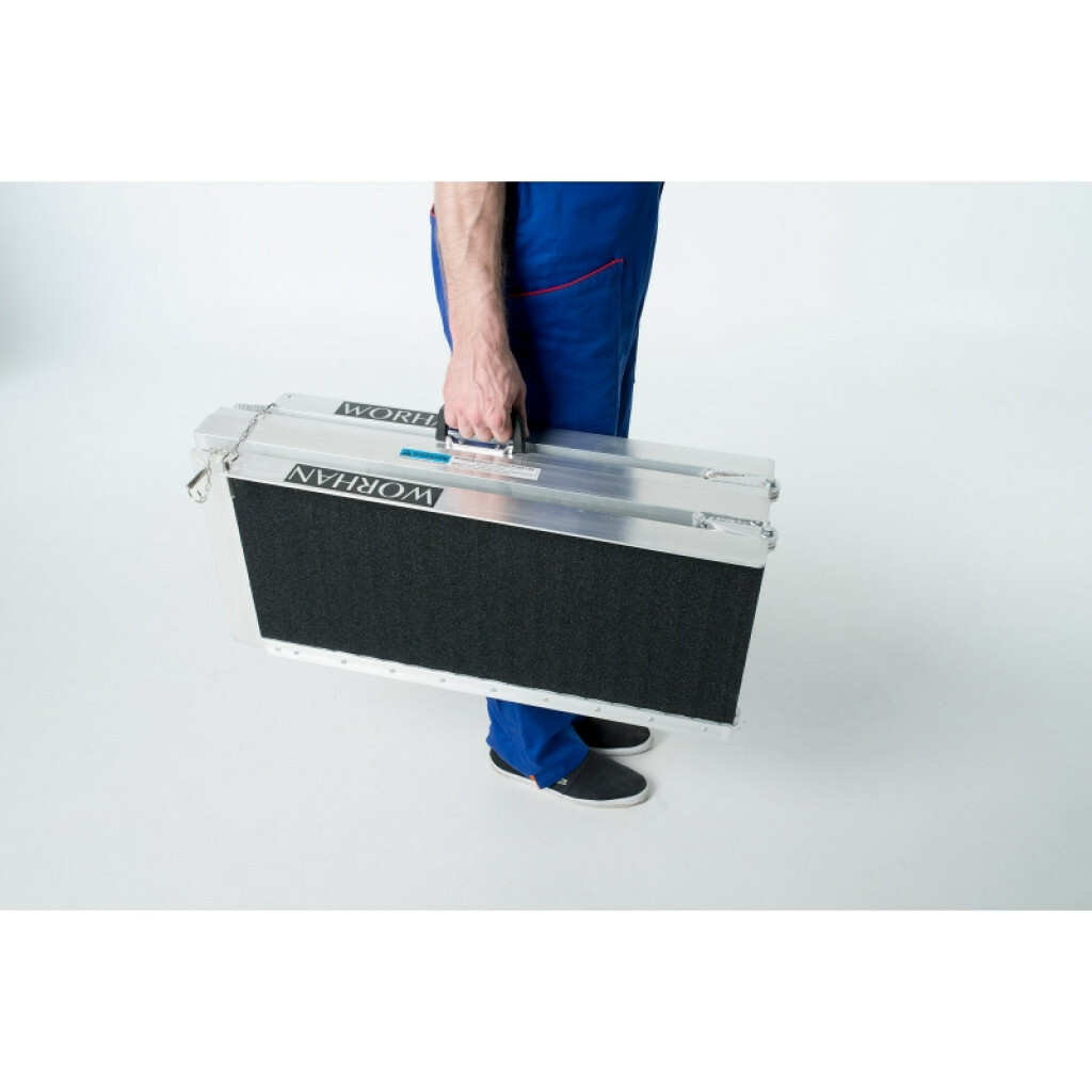 Elevata funzione antiscivol., Questa rampa si ripiega molto facilmente (due volte: in lunghezza e in larghezza)., Superficie resistente e EXTRA antiscivolo anche in caso di pioggia o pioggia., Prodotto durevole nel tempo., Materiale: alluminio anodizzato di alta qualità., Design ottimizzato, solido e unico. Molto pratico per la manipolazione o il trasporto e lo stoccaggio.