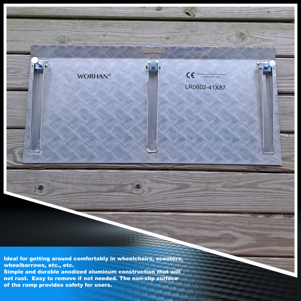 This ramp will simplify the crossing of obstacles such as: high thresholds, wires, pipes, and other places which prevent the practical movement of people or cargo. The variable height function (from 5cm to 10cm) makes any task easier. Manufactured according to EN-131 and CE standards Technical characteristics: Size: 87cm (width) x 41cm (length), Weight 4.6kg, Maximum load capacity: 300kg, designed to overcome height obstacles (from 5cm to 10cm) . Variable height function. The height is adjustable in increments of 1mm No assembly is required. Ideal for getting around comfortably in wheelchairs, scooters, wheelbarrows, etc., etc. Simple and durable anodized aluminum construction that will not rust. Easy to remove if needed. The non-slip surface of the ramp provides safety for the users.