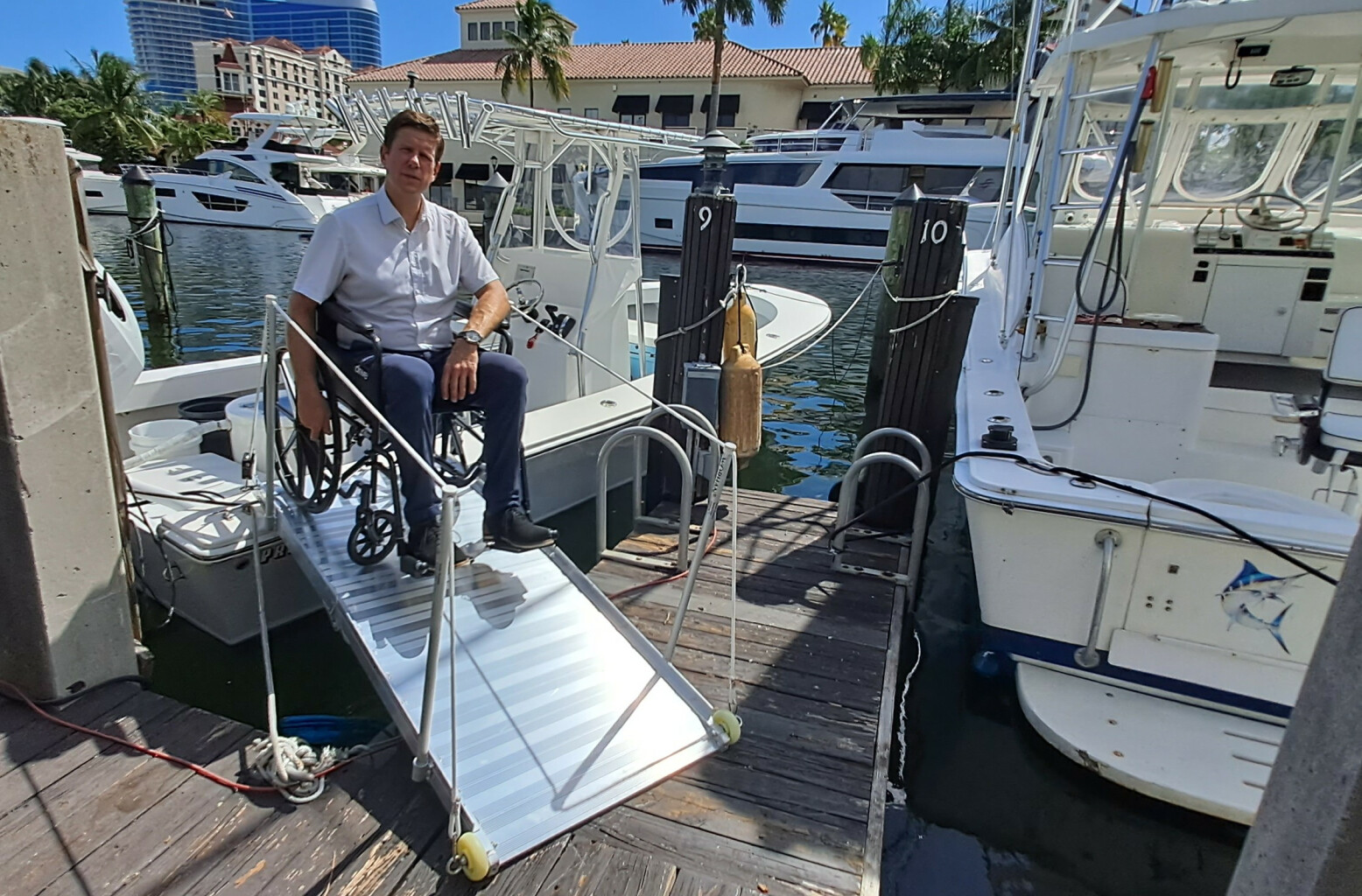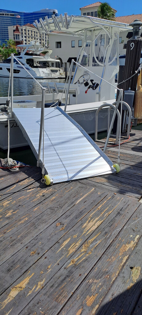 The WG6 Safe Xtra Wide & Heavy Duty Boat Wheelchair Access Ramp – Disabled and Limited Mobility is a premium foldable aluminum gangway, meticulously engineered for yachts and sailboats. Exceptionally strong (supporting up to 660 lbs of load capacity) , it offers decent handling ,delivering uncompromising stability and safety.