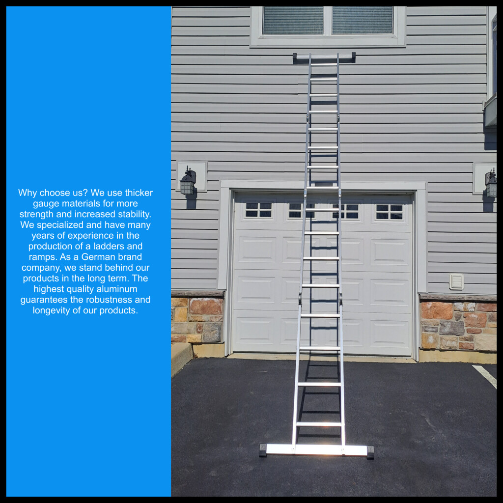 Why you should buy our products ? We use thicker gauge materials for more strength and increased stability., We specialized and have many years of experience in the production of a ladders and ramps., As a German brand company , we stand behind our products in the long term., The highest quality aluminum guarantees the robustness and longevity of our products.